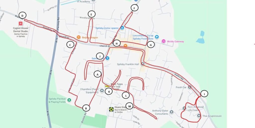 Spilsby Santa Sleigh Route and estimated times