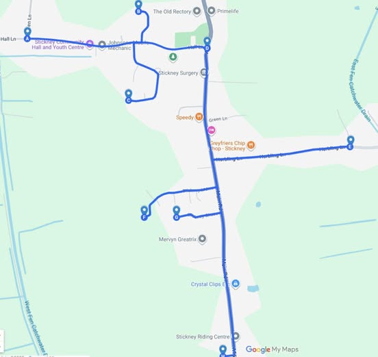 - 19:50 Finish at the entrance to Stickney Car Boot
