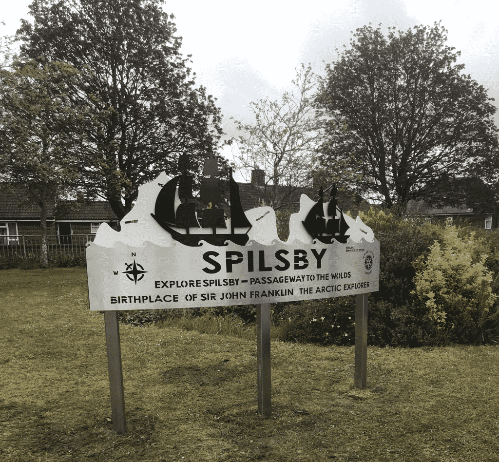 Spilsby’s new town sign – celebrating links to Sir John Franklin.